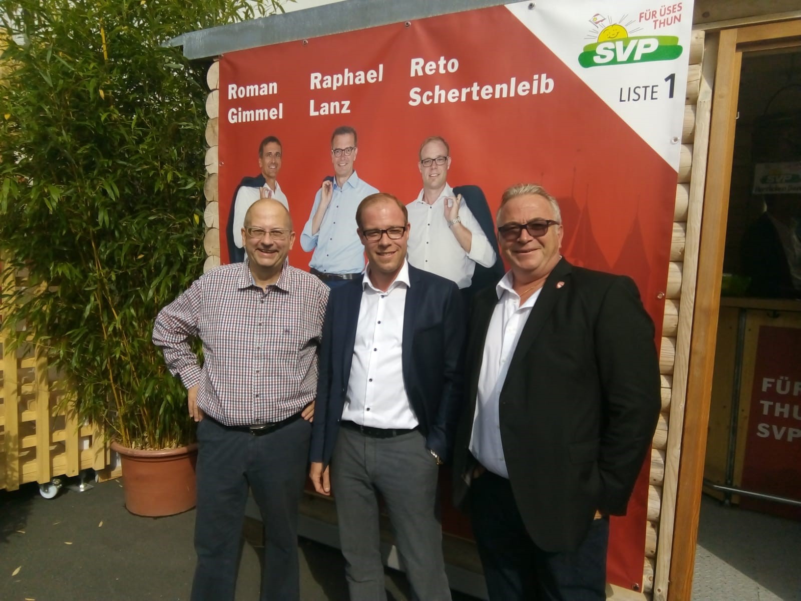 Freuen dürfen wir uns über die Wiederwahl von Raphael Lanz und Roman Gimmel in den Thuner Gemeinderat! Ebenfalls eindrücklich bestätigt in seinem Amt wurde Raphael Lanz als Thuner Stadtpräsident.