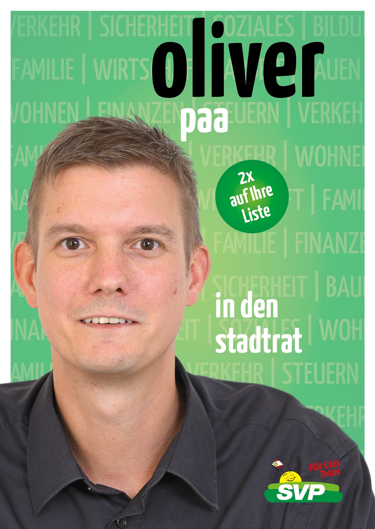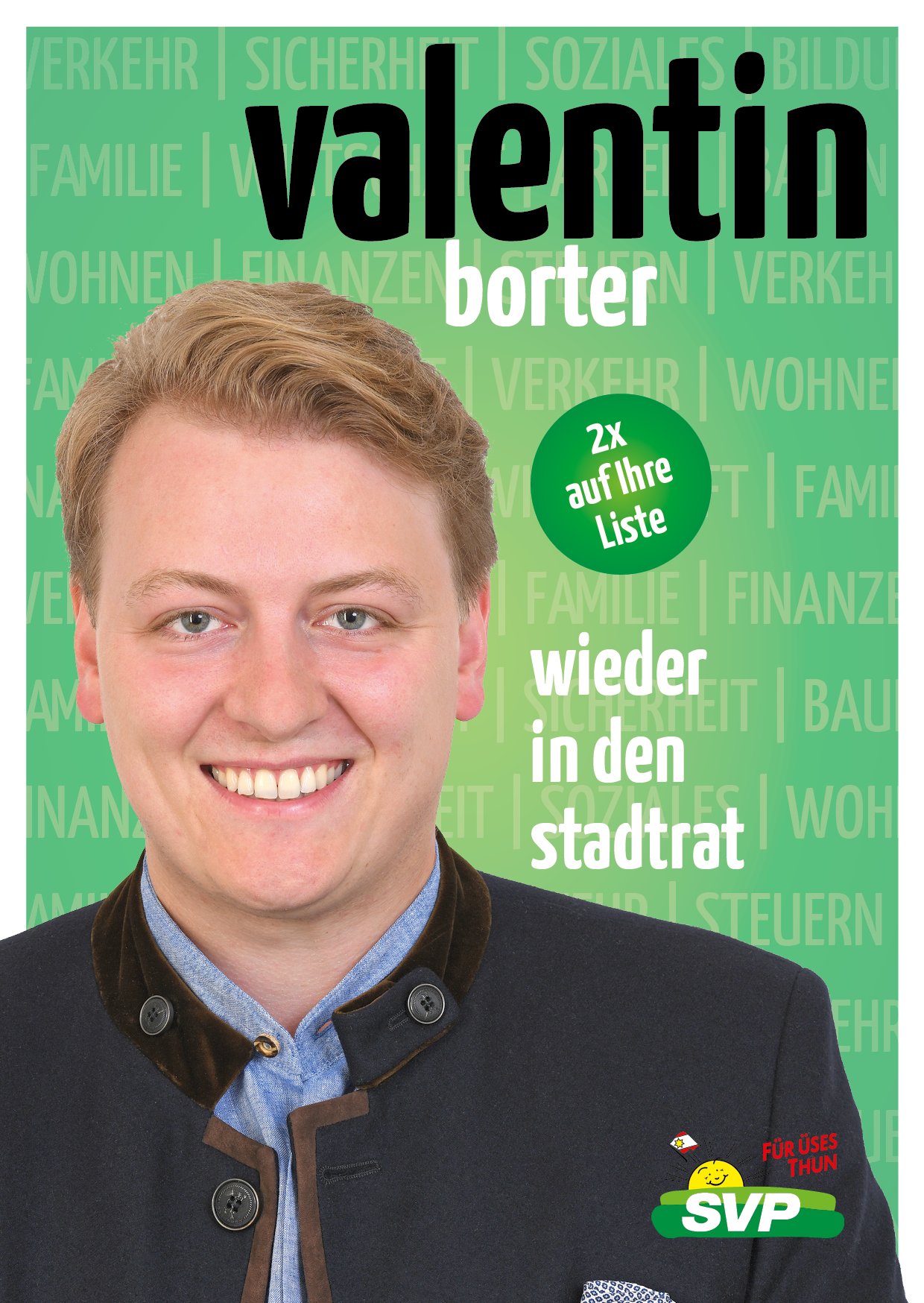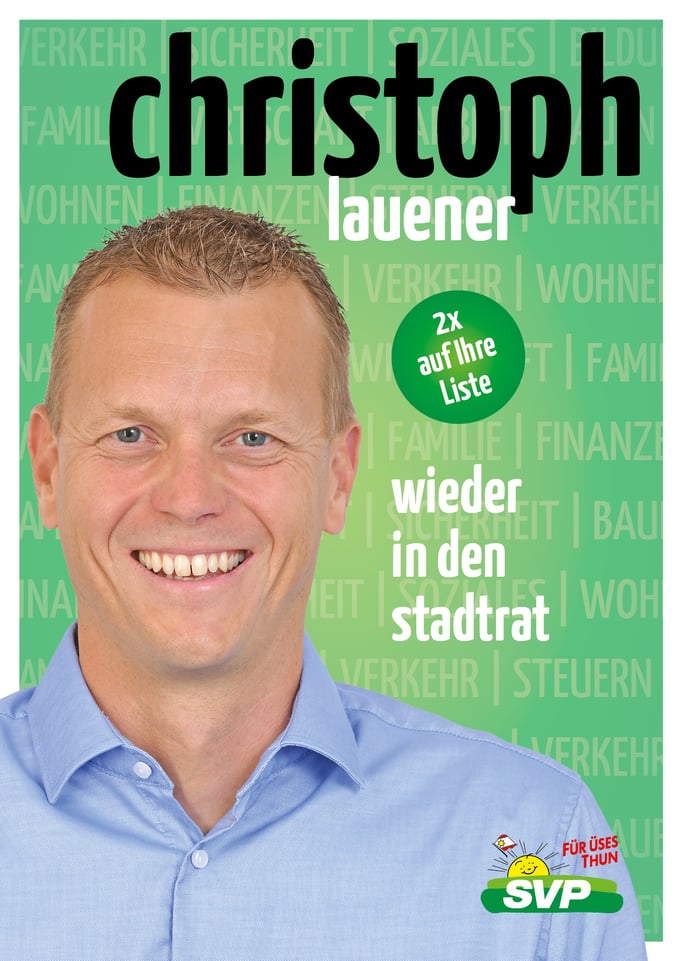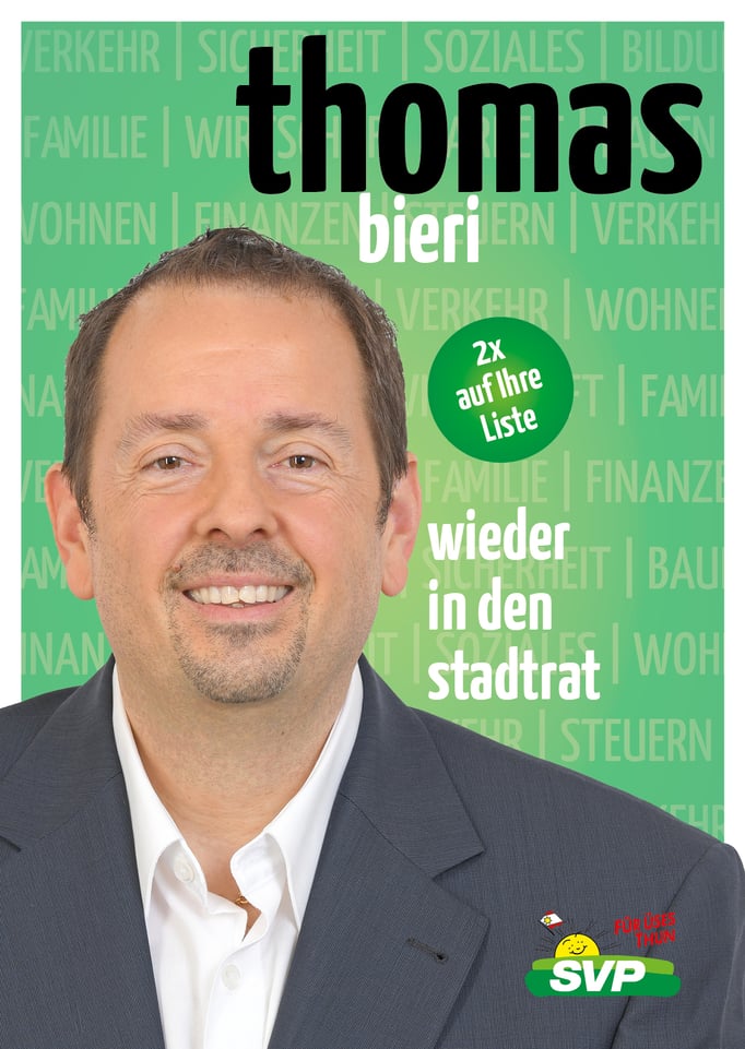 Die SVP Thun ist überzeugt, mit ihm die pragmatische und konsensorientierte Führung der Stadt im Interesse aller Thunerinnen und Thuner fortsetzen.